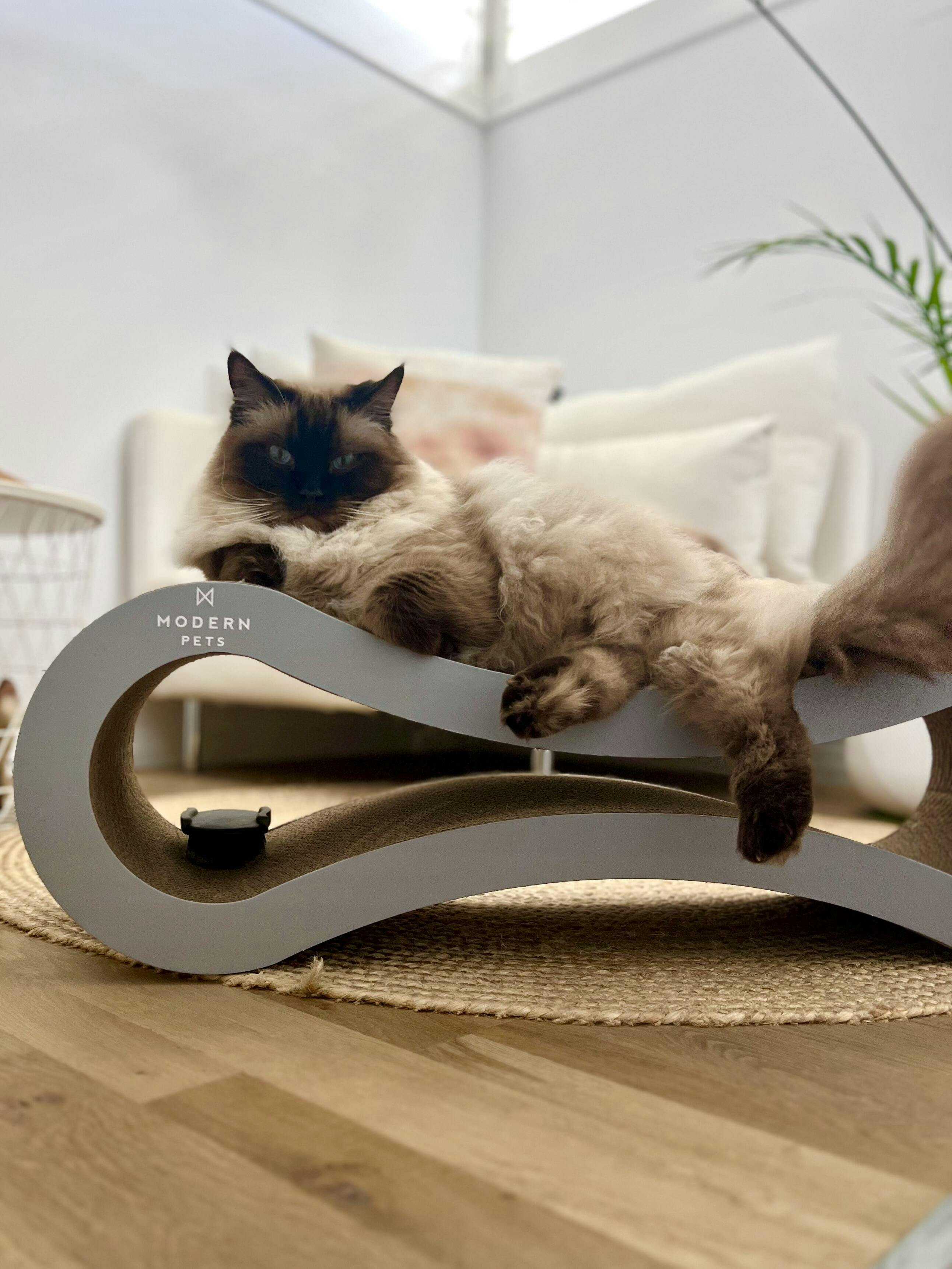 Lovely in grey too! Mugatu-approved! These scratchers are beautiful, durable, and true furniture savers. My cats absolutely love them — we can’t live without them!