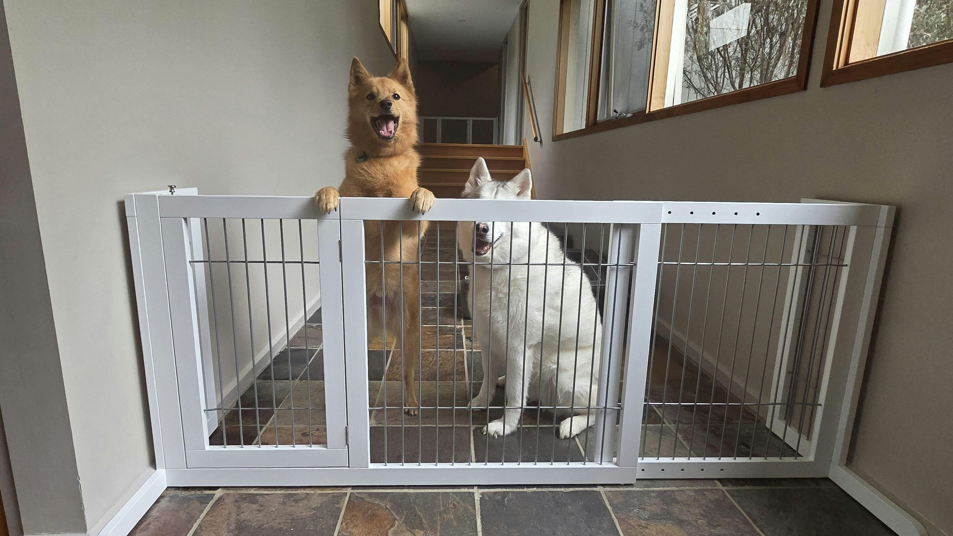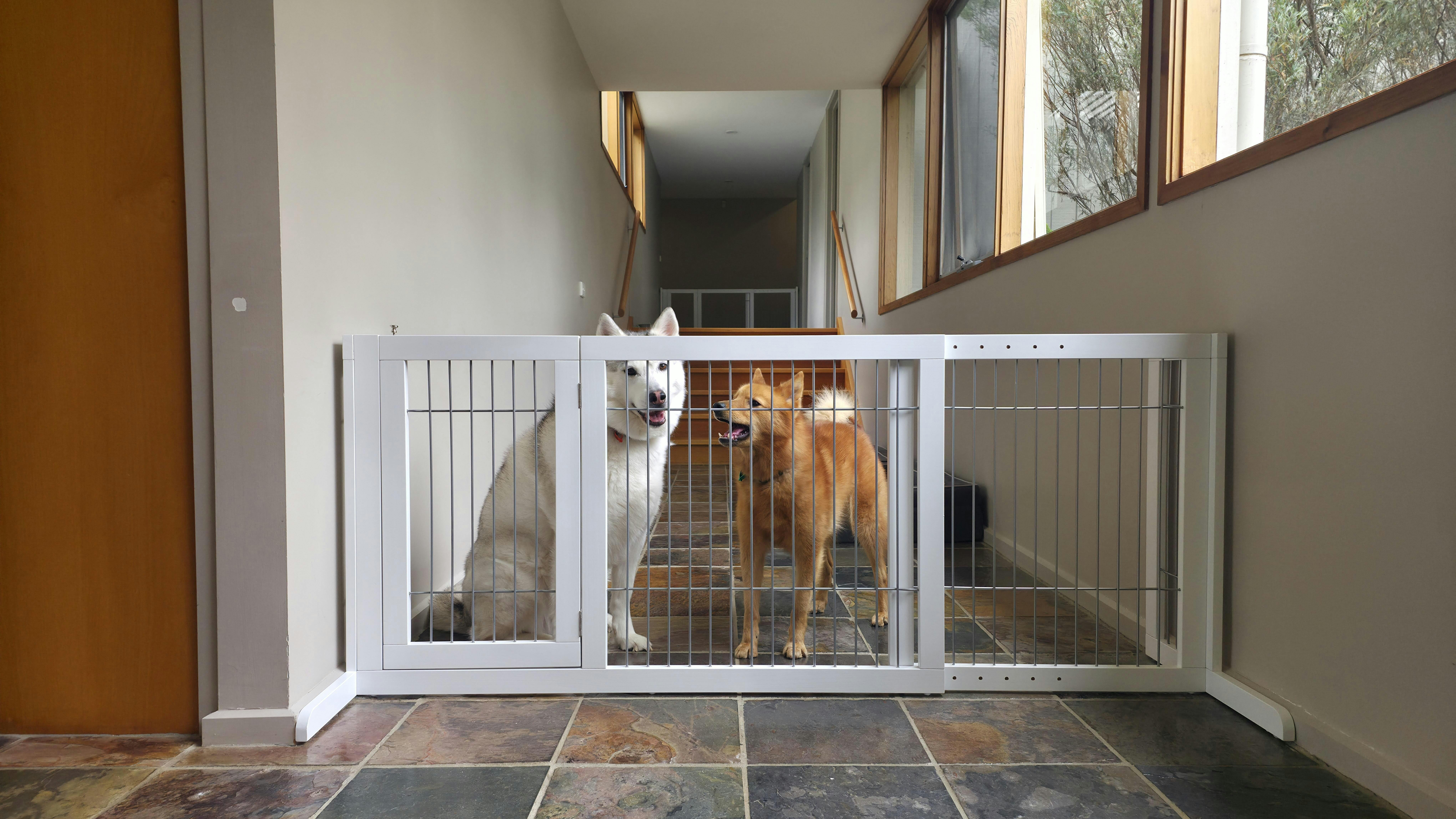 • Sturdy Construction: Crafted from high-quality materials, this gate is built to withstand the playful antics of your pets, ensuring long-lasting durability