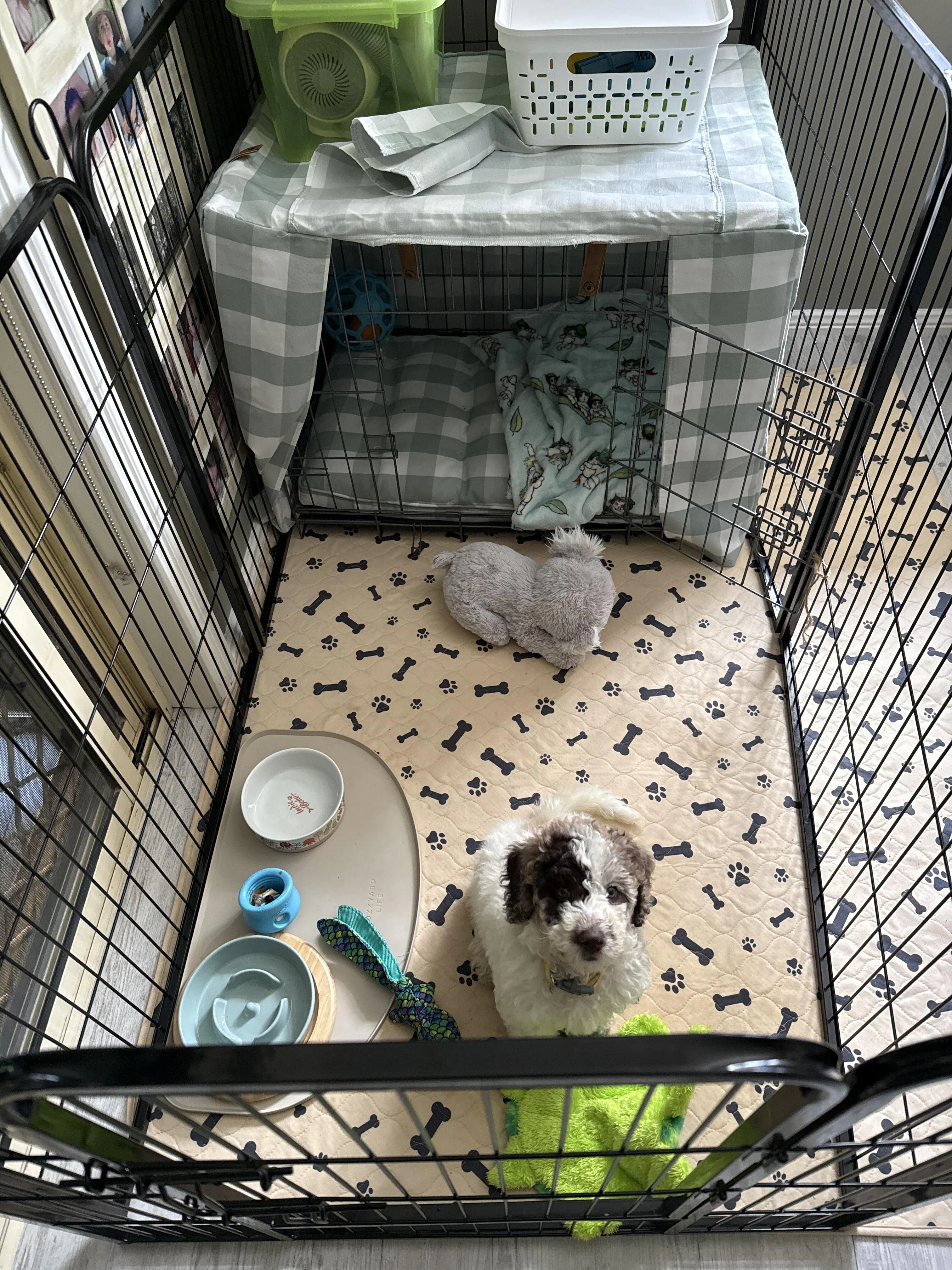 Lovely crate cover. Colour goes nicely with my decor and it helps my puppy to sleep