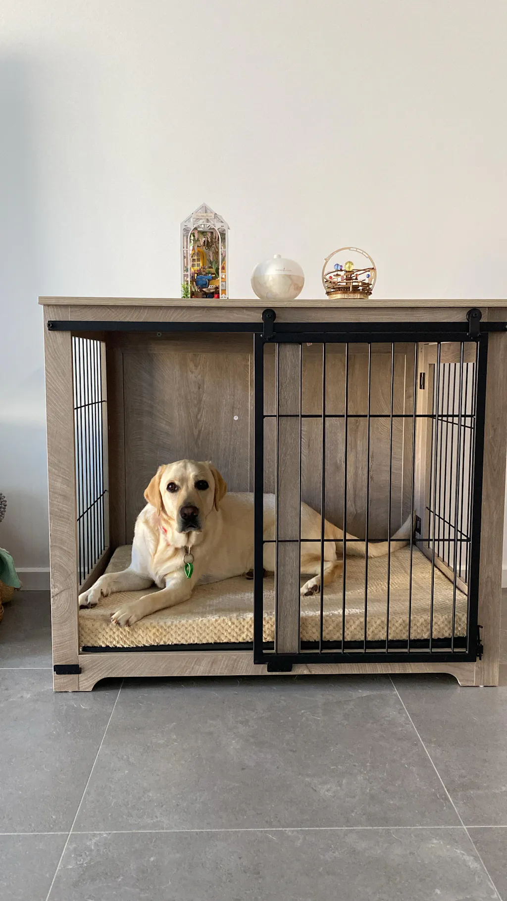 Looks so much nicer than the usual wire crates and my dogs love it. It was reasonably easy to put together and sturdy quality.