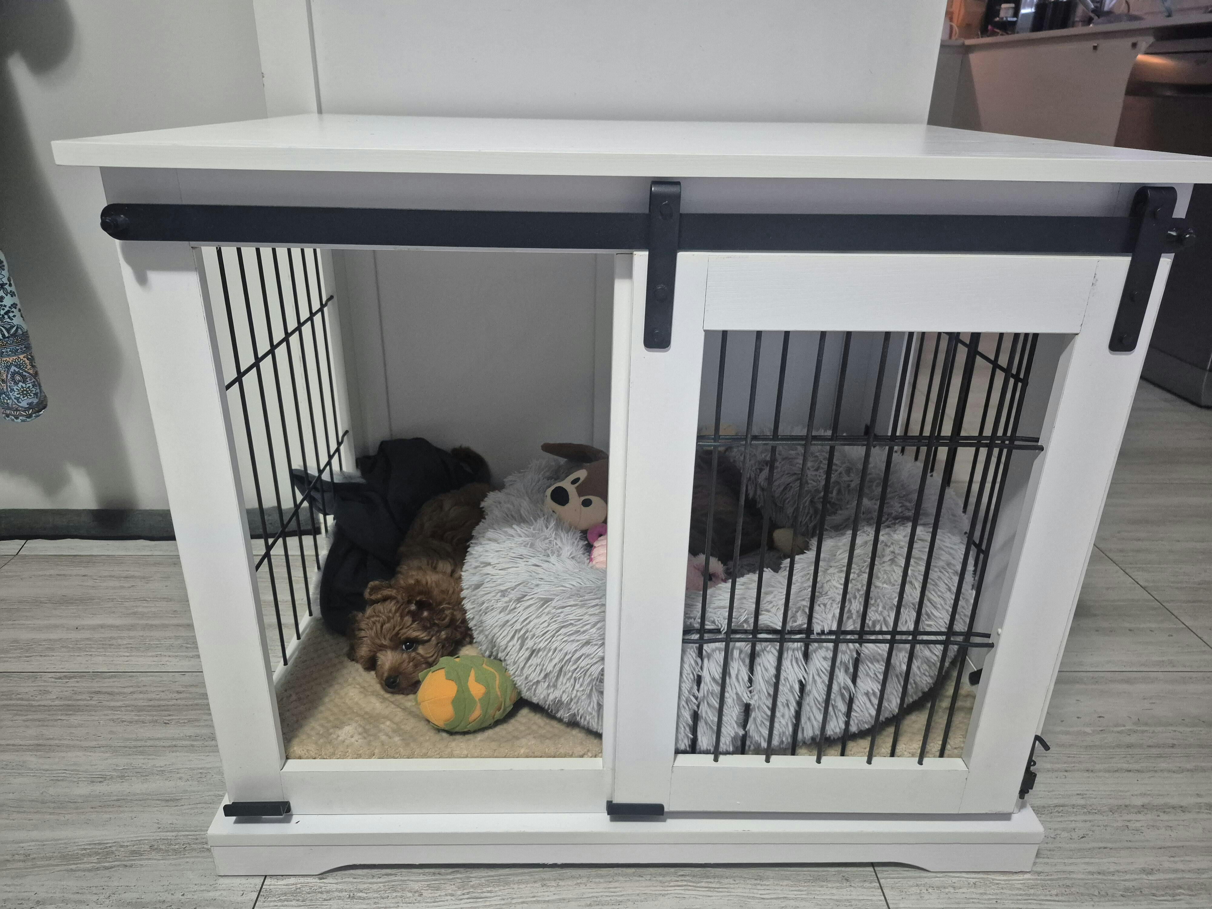 My order took a long time to arrive, but it was worth the wait. I ordered 2 sliding door white wooden crates and they were assembled with ease. They are a great addition to our family room and our Staffordshire Bull Terriers nearly love them as much as our bed!!