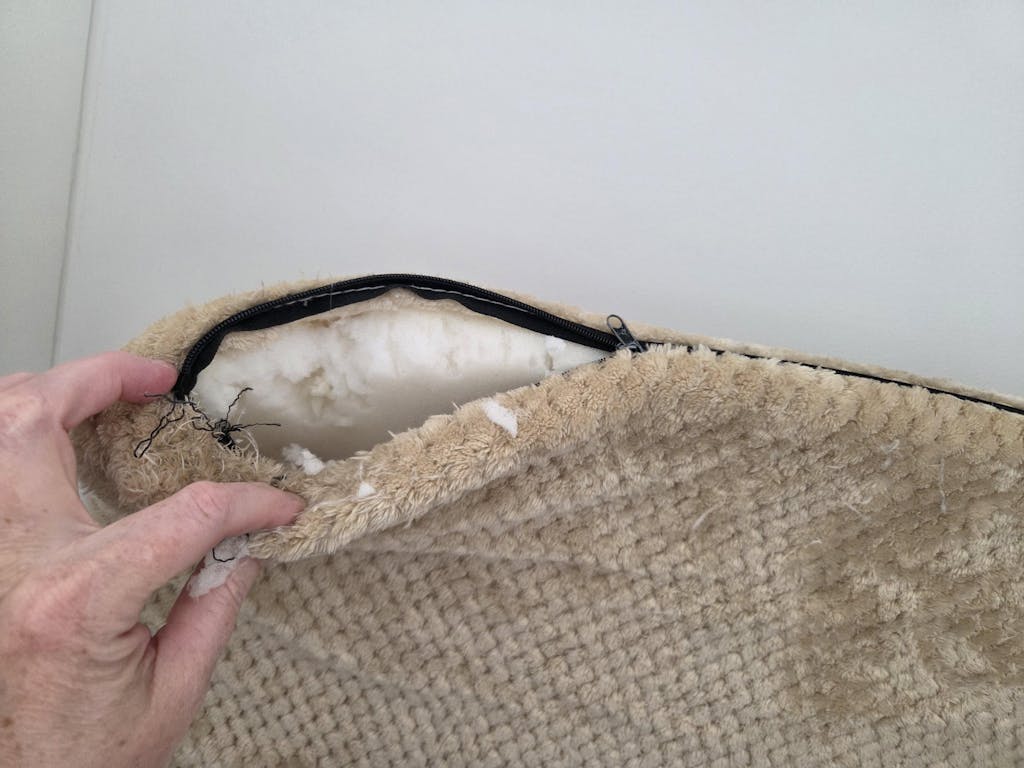 We have had our 3 month old cavoodle pup in his crate for 3 weeks. This morning we woke to discover he had found the zip, opened it and had eaten the foam insert. The outcome to his health could have been far worse! I would have expected the zip to have been hidden so it wasn't so easily accessible to pets. This must be rectified asap